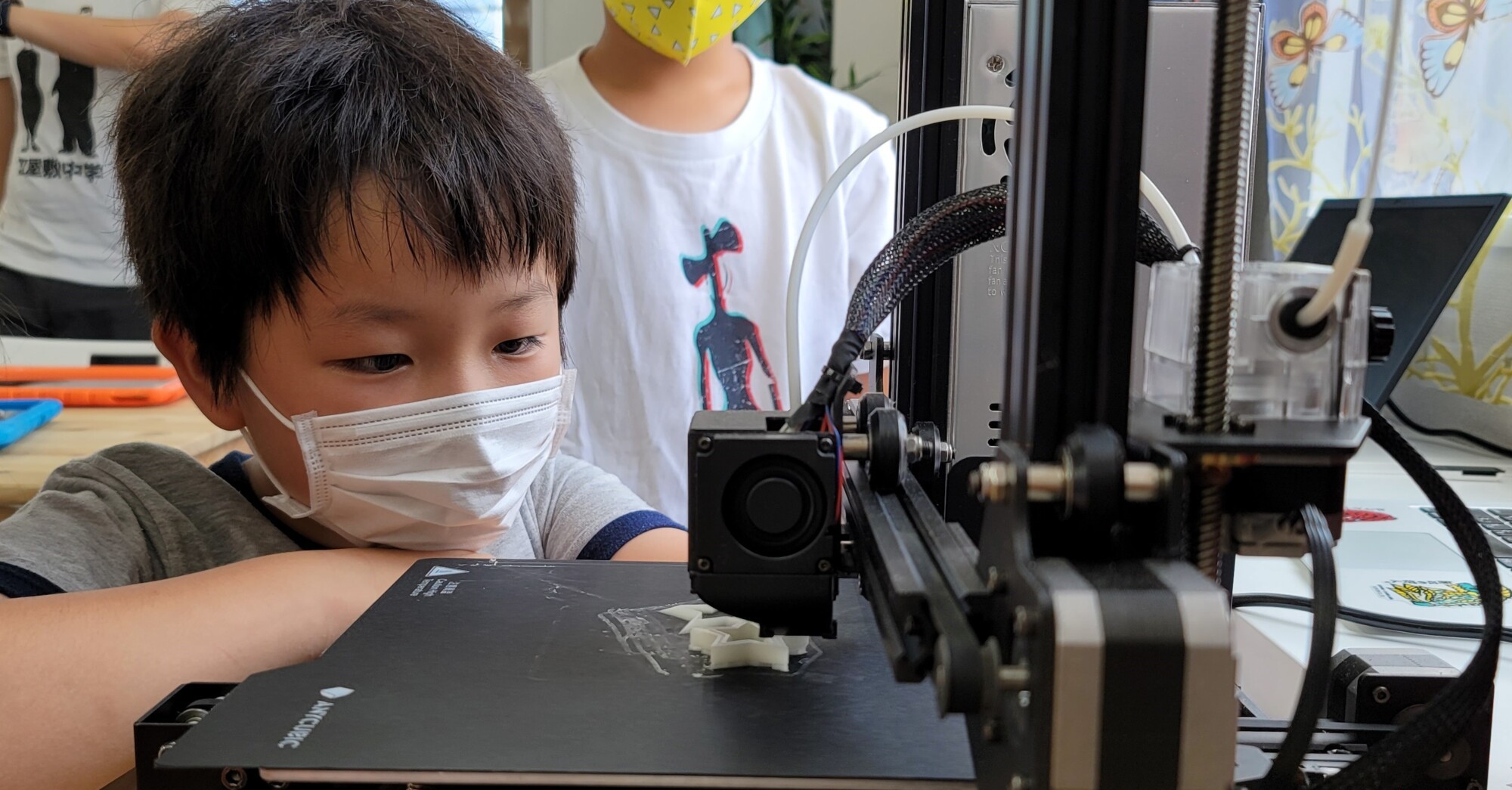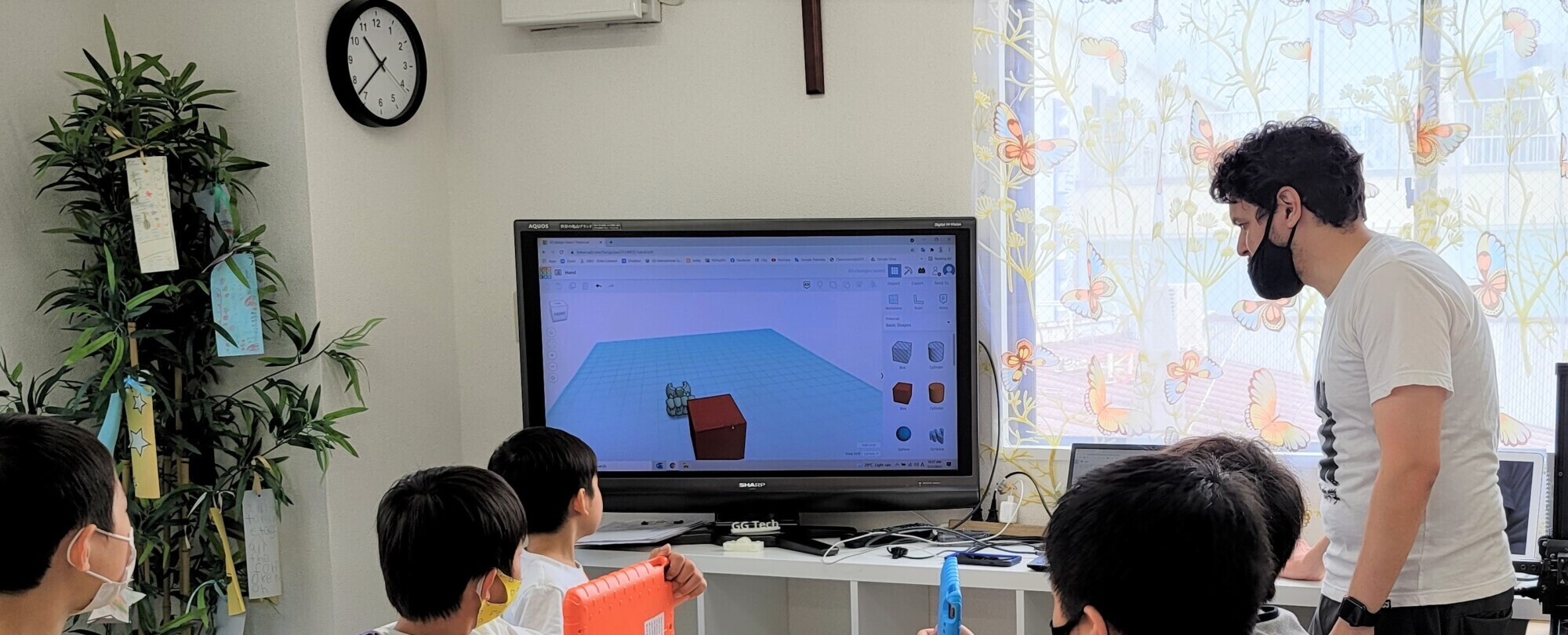 Students learn English and programming intensively for four hours once a week, which is longer than a typical classroom.